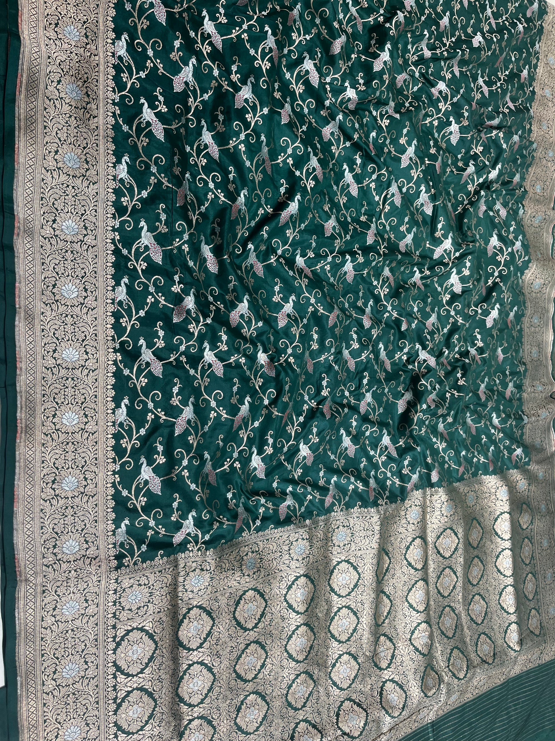Dark Green Shikargah Banarasi Pure Silk Saree