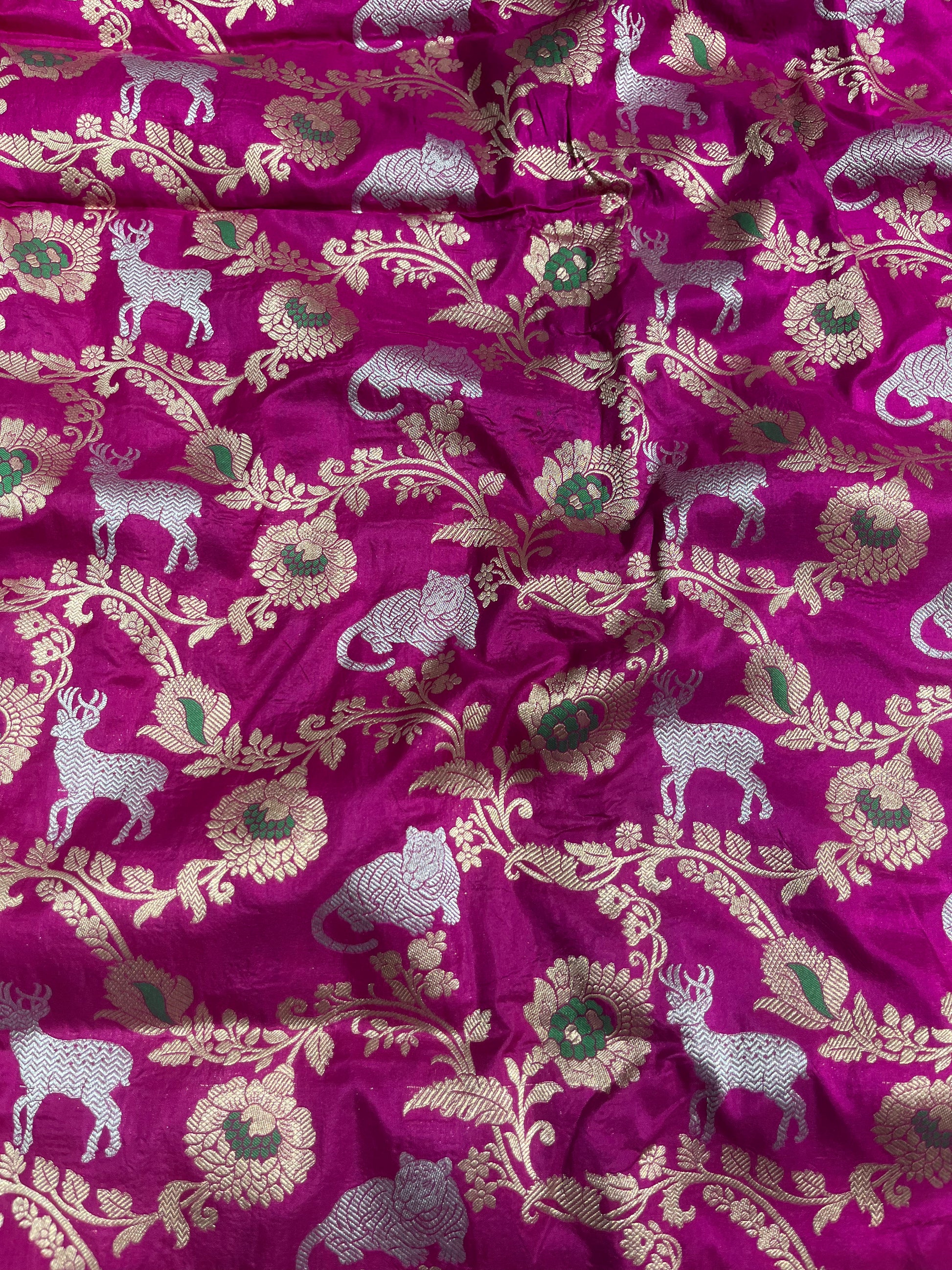Rani Pink Shikargah Banarasi Pure Silk Saree